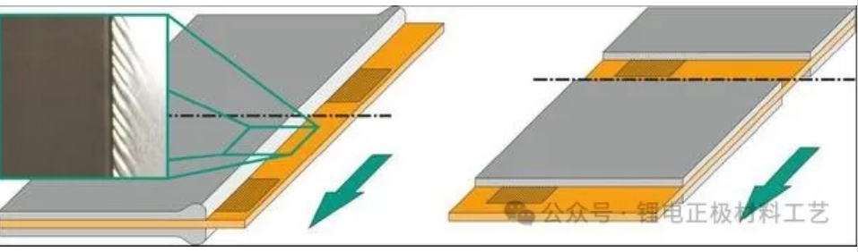 产生厚边的原因是浆料表面张力的驱使,使浆料向极片边缘无涂覆处迁移,烘干后形成厚边。