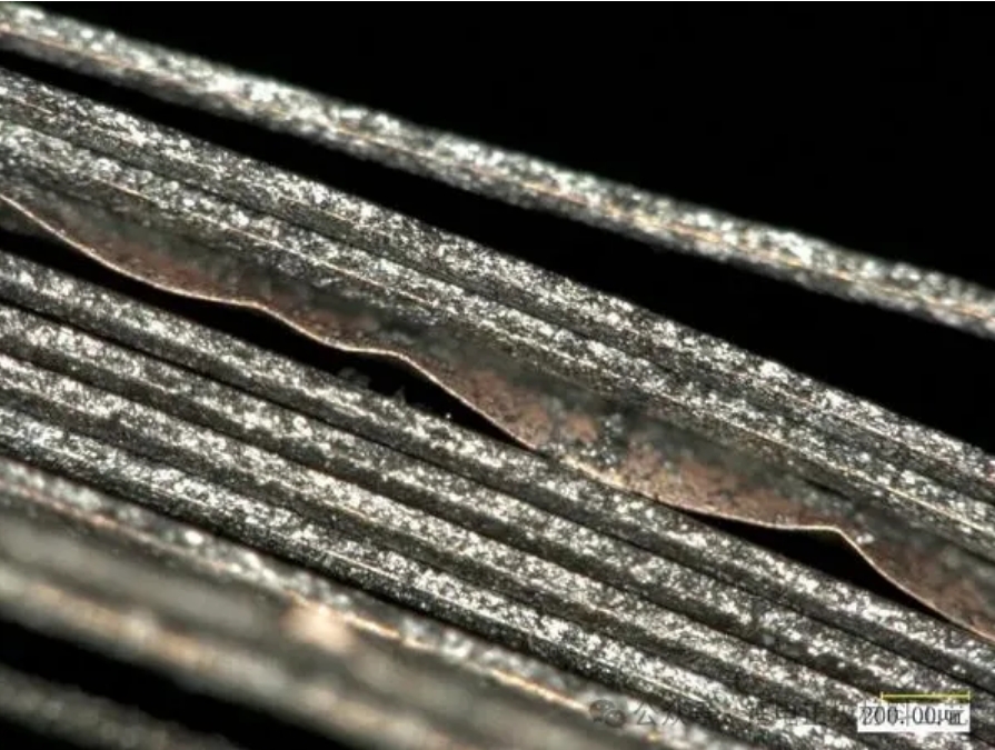 负极划痕,划痕过大过深造成划痕区域面密度低,收卷对齐度差,易造成析锂;