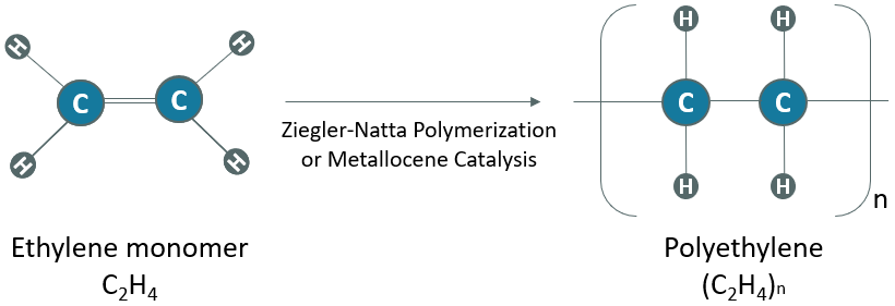聚乙烯是由乙烯(也可称作乙烷)单体通过聚合反应生成的,PE链是通过加成聚合或者自由基聚合反应形成的 高清午夜电影院,其可能的合成方法包括齐格勒 - 纳塔聚合以及茂金属催化。