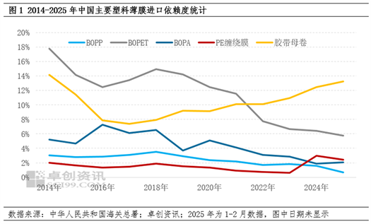 1、中国塑料薄膜产品进口依赖度不高