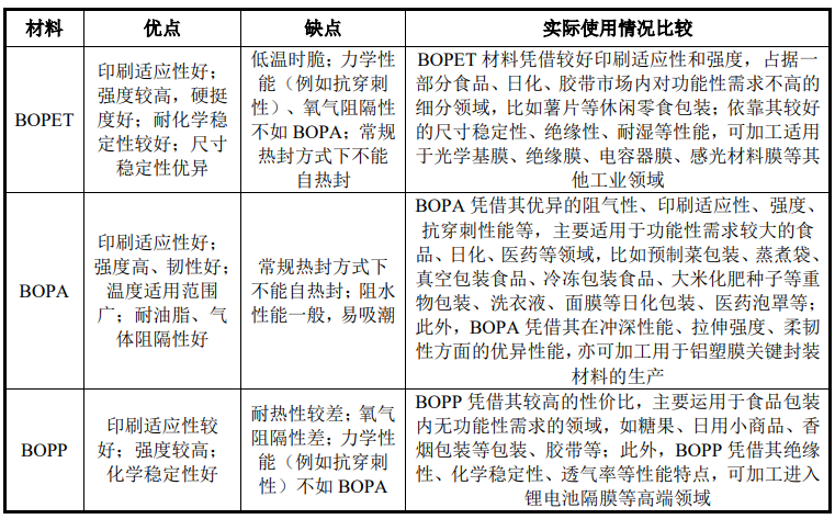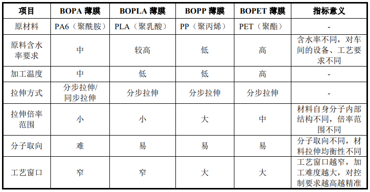 6、BOPA薄膜与BOPLA薄膜等其他相似膜材在原材料、生产工艺上的区别