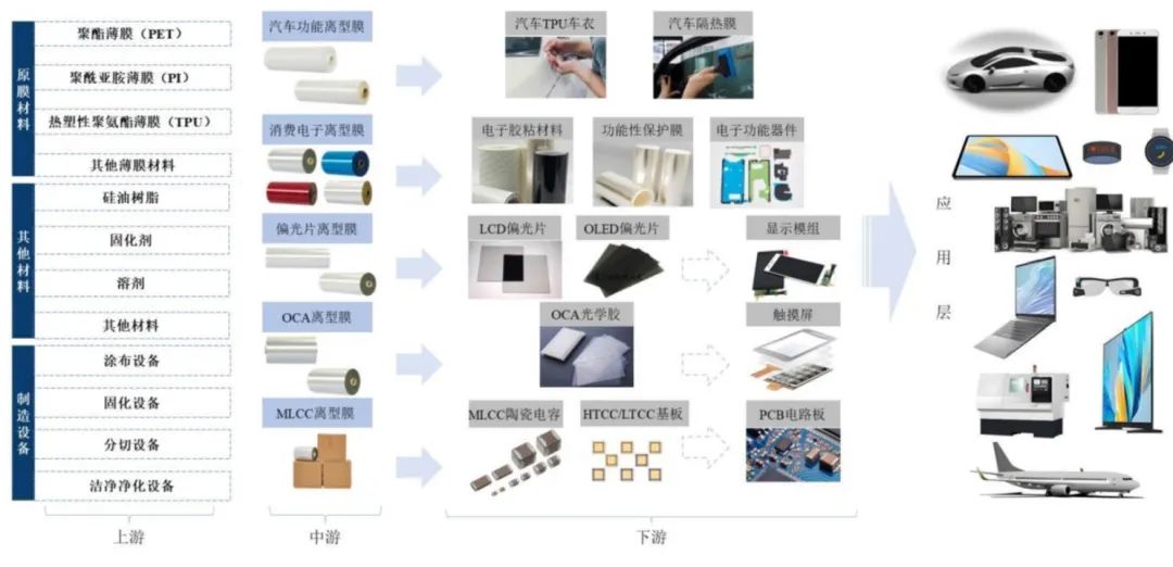 离型膜在汽车功能膜,消费电子,偏光片,OCA 光学胶 午夜电影院网站,MLCC 陶瓷电容等多个领域均有广泛应用。