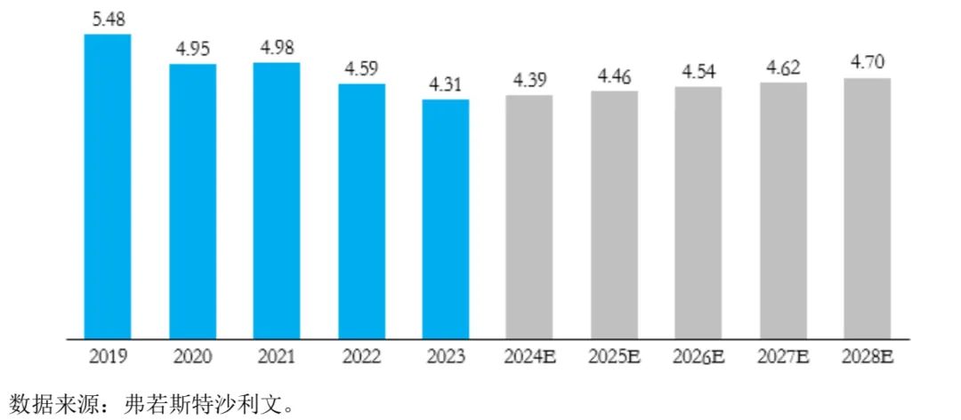 根据弗若斯特沙利文数据显示,从 OCA 光学胶离型膜市场来看,近年来市场受到消费电子出货量下滑影响,整体市场规模由 2019 年的 5.48 亿元下滑至 2023 年的 4.31 亿元,预计未来随着消费电子行业景气度有所回暖,将带动 OCA 光学胶离型膜市场逐步企稳。