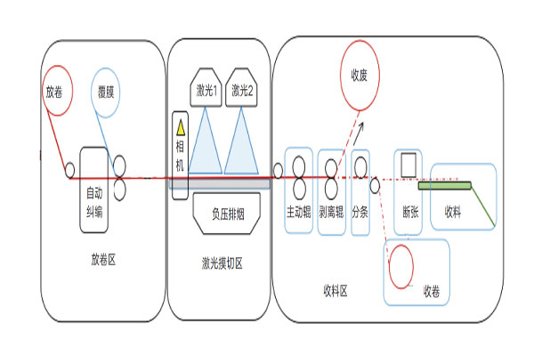 激光器功率调节:如图1所示,数字激光模切机由收放料机构和激光模切系统组成,收放料机构与传统模切机类似 午夜电影院网站,只需调节好收放料张力,而激光模切系统需重点调节激光器功率,模切不同材料,不同穿透程度(全穿或半穿),不同模切速度时,所需调节的功率都不同,一般来说,模切速度越快,功率调节越大,模切速度越慢,功率调节越小。