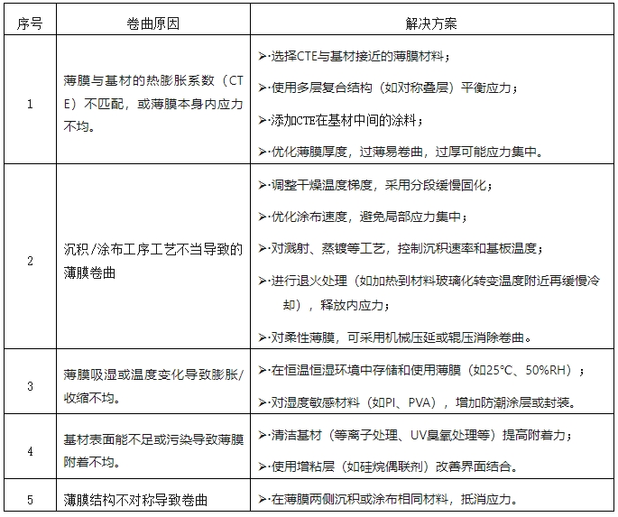 针对薄膜卷曲的不同成因,可采取以下措施进行优化: